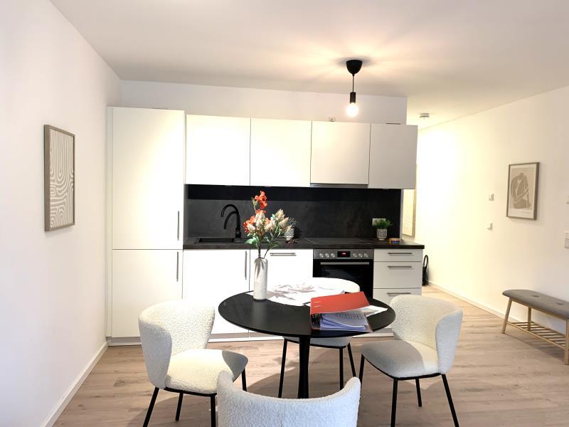 ERSTBEZUG in einer neu errichteten, urbanen Wohnanlage, die die Anforderungen an den KfW40 -Standard erfüllt. Im Haus befindet sich ein Aufzug mit dem man alle Etagen, inkl. Tiefgarage, erreicht. Moderne Wohneinheiten in verschiedenen Größen warten auf Sie - sprechen Sie uns gerne darauf an. Urbane 2-Zimmer-Wohnung im 3. OG mit ca. 54 m² Wohnfläche und moderner Ausstattung. Die Wohnung verfügt über einen schönen, komplett überdachten Balkon. Ausstattung: - Alle Wohnräume und Flur mit hochwertigem Design-Vinylboden in Holzoptik ausgestattet - Badezimmer mit modernen Design-Fliesen im Format 60 cm x 60 cm gestaltet - Offene Küche mit hochwertiger Einbauküche inkl. aller Geräte - Badezimmer mit Dusche (Abtrennung aus Echtglas), WC und moderner Sanitärausstattung - Waschmaschinenanschluss in der Küchenzeile integriert - Kunststofffenster mit Wärmeschutzverglasung - elektrisch gesteuerte Rollläden - Balkon mit witterungsbeständigem Dielenbelag - Fußbodenheizung mit elektrischen Raumthermostaten - Video-Gegensprechanlage - Barrierefrei - Kellerabteil - Beheizung über Fernwärme mit energieeffizienter Kraft-Wärme-Kopplung Ein Tiefgaragen-Stellplatz kann für monatlich zu EUR 120,-- zzgl. zur Wohnungskaltmiete angemietet werden. Die Nebenkosten in Höhe von EUR 129,00 monatlich beinhalten einen Heizkostenabschlag, jedoch keinen Abschlag für Strom. Die Anmeldung (Strom) muss eigenständig beim örtlichen Energieversorger erfolgen. Die Nebenkosten enthalten die Hausordnung (Putzdienst) und den Winterdienst (Schneeräumen). Der Vermieter wünscht eine Anmietung von mindestens zwei Jahren und eine Indexmietvereinbarung im Mietvertrag.