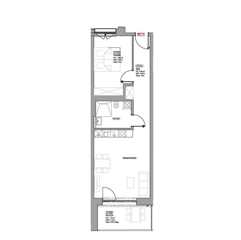 ERSTBEZUG in einer neu errichteten, urbanen Wohnanlage, die die Anforderungen an den KfW40 -Standard erfüllt. Im Haus befindet sich ein Aufzug mit dem man alle Etagen, inkl. Tiefgarage, erreicht. Moderne Wohneinheiten in verschiedenen Größen warten auf Sie - sprechen Sie uns gerne darauf an. Sehr schöne 2-Zimmer-Wohnung, direkt im EG mit ca. 54 m² Wohnfläche und moderner Ausstattung. Die Wohnung verfügt über einen schönen, komplett überdachten Balkon. Ausstattung: - Alle Wohnräume und Flur mit hochwertigem Design-Vinylboden in Holzoptik ausgestattet - Badezimmer mit modernen Design-Fliesen im Format 60 cm x 60 cm gestaltet - Offene Küche mit hochwertiger Einbauküche inkl. aller Geräte - Badezimmer mit Dusche (Abtrennung aus Echtglas), WC und moderner Sanitärausstattung - Waschmaschinenanschluss im Badezimmer vorhanden - Kunststofffenster mit Wärmeschutzverglasung - elektrisch gesteuerte Rollläden - Balkon mit witterungsbeständigem Dielenbelag - Fußbodenheizung mit elektrischen Raumthermostaten - Video-Gegensprechanlage - Barrierefrei - Kellerabteil - Beheizung über Fernwärme mit energieeffizienter Kraft-Wärme-Kopplung Die Wohnung wird unmöbliert vermietet! Ein Tiefgaragen-Stellplatz kann für monatlich zu EUR 120,-- zzgl. zur Wohnungskaltmiete angemietet werden. Die Nebenkosten in Höhe von EUR 131,00 monatlich beinhalten einen Heizkostenabschlag, jedoch keinen Abschlag für Strom. Die Anmeldung (Strom) muss eigenständig beim örtlichen Energieversorger erfolgen. Die Nebenkosten enthalten die Hausordnung (Putzdienst) und den Winterdienst (Schneeräumen). Der Vermieter wünscht eine Anmietung von mindestens zwei Jahren und eine Indexmietvereinbarung im Mietvertrag.