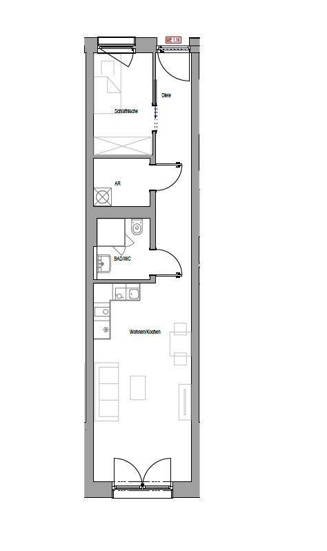ERSTBEZUG in einer neu errichteten, urbanen Wohnanlage, die die Anforderungen an den KfW40 -Standard erfüllt. Im Haus befindet sich ein Aufzug mit dem man alle Etagen, inkl. Tiefgarage, erreicht. Moderne Wohneinheiten in verschiedenen Größen warten auf Sie - sprechen Sie uns gerne darauf an. Kleine 1,5-Zimmer-Wohnung im 1. OG mit ca. 45 m² Wohnfläche und moderner Ausstattung. Ausstattung: - Alle Wohnräume und Flur mit hochwertigem Design-Vinylboden in Holzoptik ausgestattet - Badezimmer mit modernen Design-Fliesen im Format 60 cm x 60 cm gestaltet - Offene Küche mit hochwertiger Einbauküche inkl. aller Geräte - Badezimmer mit Dusche (Abtrennung aus Echtglas), WC und moderner Sanitärausstattung - Separater Abstellraum mit Waschmaschinenanschluss - Kunststofffenster mit Wärmeschutzverglasung - elektrisch gesteuerte Rollläden - Fußbodenheizung mit elektrischen Raumthermostaten - Video-Gegensprechanlage - Barrierefrei - Beheizung über Fernwärme mit energieeffizienter Kraft-Wärme-Kopplung Ein Tiefgaragen-Stellplatz kann für monatlich zu EUR 120,-- zzgl. zur Wohnungskaltmiete angemietet werden. Die Nebenkosten in Höhe von EUR 107,00 monatlich beinhalten einen Heizkostenabschlag, jedoch keinen Abschlag für Strom. Die Anmeldung (Strom) muss eigenständig beim örtlichen Energieversorger erfolgen. Die Nebenkosten enthalten die Hausordnung (Putzdienst) und den Winterdienst (Schneeräumen). Der Vermieter wünscht eine Anmietung von mindestens zwei Jahren und eine Indexmietvereinbarung im Mietvertrag.