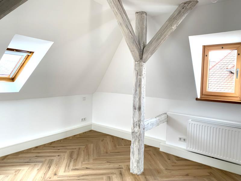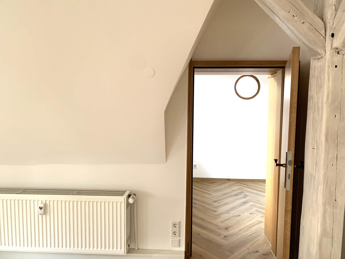 Erstbezug nach Sanierung Charmante 2,5-Zimmer-Wohnung mit ca. 90 m² Wohnfläche im 3.OG (DG) eines gepflegten Mehrfamilienhaus mit vier Parteien, Baujahr 1899 (Denkmalschutz) Die Wohnung verfügt über einen Balkon der über das Wohnzimmer zu begehen ist. Die in der Wohnung befindliche Einbauküche ist Eigentum des Vermieters und wird mitvermietet. Ausstattung: - Wohnräume und Küchenbereich mit hochwertigem Vinylboden ausgestattet - Badezimmer, WC mit Fliesen ausgestattet - offene Küche mit Einbauküche - Einbauküche mit Backofen, Kochfeld mit integriertem Dunstabzug, Geschirrspüler, Kühlschrank, Spüle und Unterschränken - Bad mit Dusche, Waschbecken, WC und Handtuchheizkörper - separates WC (direkt am Schlafzimmer) - Kellerabteil - Gas-Zentralheizung Die Nebenkosten enthalten die Hausordnung (Putzdienst) und den Winterdienst (Schneeräumen). Die Nebenkosten in Höhe von ca. EUR 400,-- monatlich beinhalten einen Heizkostenabschlag, jedoch keinen Abschlag für Strom. Die Anmeldung (Strom) muss eigenständig beim örtlichen Energieversorger erfolgen, die Abschlagszahlungen erfolgen direkt mit dem Energieversorger.