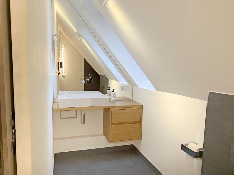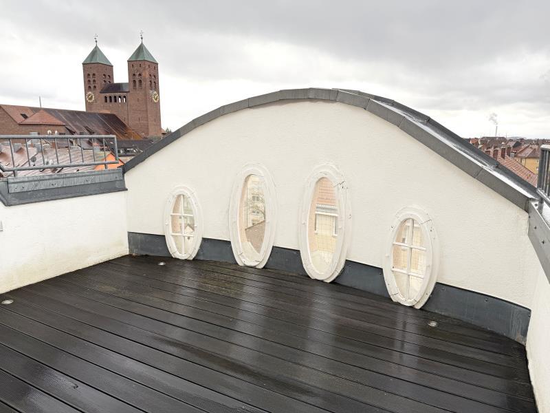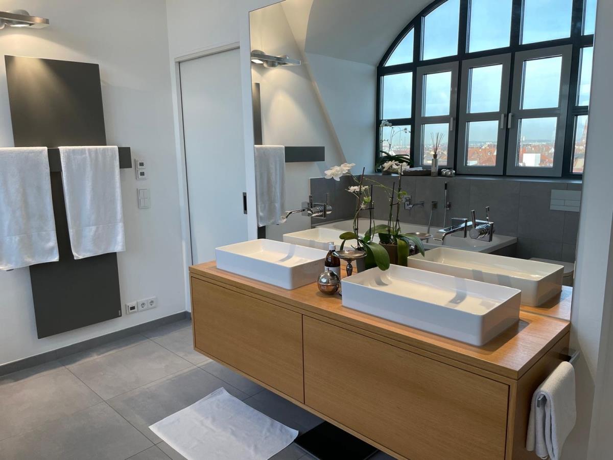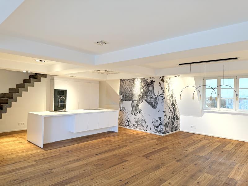 Exklusive und helle 3-Zimmer-Maisonette-Wohnung mit ca. 134 m² Wohnfläche im 5. und 6. Obergeschoss (beides Dachgeschosse mit Schrägen). Die Wohnung befindet sich in einem gepflegten Mehrfamilienhaus mit 16 Einheiten, Baujahr 1913 (Denkmalschutz). Die Wohnung wurde im Jahr 2022 umfangreich renoviert und modernisiert. Ein Stellplatz im Innenhof gehört zu der Wohnung und ist bereits im Kaufpreis der Wohnung in Höhe von EUR 995.000,-- enthalten. Das Haus verfügt über einen Aufzug der bis ins 4.OG fährt. Zugangsmöglichkeit hat man zu der Wohnung vom 5. OG als auch vom 6.OG. Über den Wohnbereich durch große Panorama Schiebetüren gelangt man auf die ca. 13 m² große Dachterrasse ca. 13 m² mit großartigem Blick über Nürnberg (Ausrichtung: Westen) In der gesamten Wohnungen sind mehrere hochwertige Einbauschränke eingebracht (Flur, Abstellraum, Ankleide). Diese sind ebenfalls im Kaufpreis enthalten. Ebenso im Kaufpreis enthalten ist die Hochwertige Einbauküche mit Kochinsel der Marke Gaggenau mit ebenso hochwertigen Elektrogeräten. Aufteilung: 3. OG: Eingangsbereich, großzügiger Wohn-Koch-Essbereich (ca. 78 m²) mit Zugang zur Dachterrasse, Gästezimmer, Gäste-WC mit Duschbad, Abstellraum 4. OG: Schlafzimmer, Ankleide, Badezimmer Ausstattung: - Wohn-Koch-Essbereich und Flur mit Kirsch-Parkettboden ausgestattet - Schlafzimmer und Ankleide mit Epoxidharzboden - Badezimmer und Gäste-WC hochwertig gefliest - Tageslichtbad mit großen Rundbogenfenster, Badewanne, separate bodengleiche Dusche mit Echtglaswand, Doppelwaschtisch, WC und Handtuchheizkörper - Tageslicht Gäste-Duschbad mit bodengleicher Dusche, Waschtisch und WC - Waschmaschinenanschluss im Abstellraum - Kaminofen im Wohnbereich - Klimaanlage im Schlafzimmer - Integrierte Einbaudeckenstrahler - Spitzbart-Dsignertreppe - Metall-Glas-Schiebetür im Obergeschoss - Dachterrasse mit Wasseranschluss - Kellerabteil - Fahrradraum - Beheizung erfolgt mittels Fernwärme Nebenkosten (Wohngeld) mtl.: - ca. EUR 270,-- / Monat Kaltnebenkosten (z.B. Müllabfuhr, Straßenreinigung, Hausmeisterservice, etc.) - ca. EUR 37,-- / Monat Verwaltungsgebühren - ca. EUR 122,-- / Monat Instandhaltungs-Rücklage - ca. EUR 252,-- / Monat Heizung, Warmwasser - Gesamt: EUR 681,-- (Umlagefähig: EUR 452,-- Nicht umlagefähig: EUR 229,--) Die Instandhaltungsrücklagen für das Gesamtanwesen belaufen sich derzeit (Stand 31.12.2024) auf ca. EUR 181.000,--. WEG-Protokolle auf Anfrage erhältlich.
