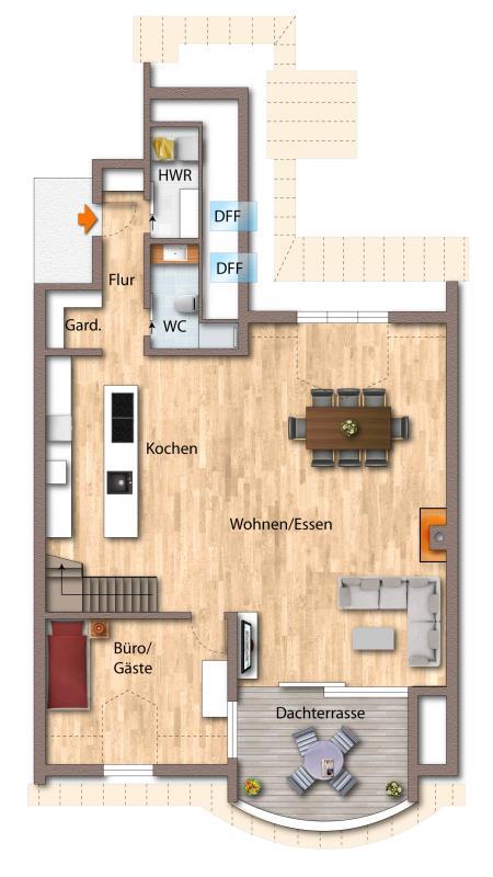 Exklusive und helle 3-Zimmer-Maisonette-Wohnung mit ca. 134 m² Wohnfläche im 5. und 6. Obergeschoss (beides Dachgeschosse mit Schrägen). Die Wohnung befindet sich in einem gepflegten Mehrfamilienhaus mit 16 Einheiten, Baujahr 1913 (Denkmalschutz). Die Wohnung wurde im Jahr 2022 umfangreich renoviert und modernisiert. Ein Stellplatz im Innenhof gehört zu der Wohnung und wird mitvermietet (im Mietpreis enthalten) Das Haus verfügt über einen Aufzug der bis ins 4.OG fährt. Zugangsmöglichkeit hat man zu der Wohnung vom 5. OG als auch vom 6.OG. Über den Wohnbereich durch große Panorama Schiebetüren gelangt man auf die ca. 13 m² große Dachterrasse ca. 13 m² mit großartigem Blick über Nürnberg (Ausrichtung: Westen) In der gesamten Wohnungen sind mehrere hochwertige Einbauschränke eingebracht (Flur, Abstellraum, Ankleide). Eine hochwertige Einbauküche mit Kochinsel der Marke Gaggenau mit ebenso hochwertigen Elektrogeräten ergänzen die perfekte Ausstattung. Aufteilung: 3. OG: Eingangsbereich, großzügiger Wohn-Koch-Essbereich (ca. 78 m²) mit Zugang zur Dachterrasse, Gästezimmer, Gäste-WC mit Duschbad, Abstellraum 4. OG: Schlafzimmer, Ankleide, Badezimmer Ausstattung: - Wohn-Koch-Essbereich und Flur mit Kirsch-Parkettboden ausgestattet - Schlafzimmer und Ankleide mit Epoxidharzboden - Badezimmer und Gäste-WC hochwertig gefliest - Tageslichtbad mit großen Rundbogenfenster, Badewanne, separate bodengleiche Dusche mit Echtglaswand, Doppelwaschtisch, WC und Handtuchheizkörper - Tageslicht Gäste-Duschbad mit bodengleicher Dusche, Waschtisch und WC - Waschmaschinenanschluss im Abstellraum - Kaminofen im Wohnbereich - Klimaanlage im Schlafzimmer - Integrierte Einbaudeckenstrahler - Spitzbart-Dsignertreppe - Metall-Glas-Schiebetür im Obergeschoss - Dachterrasse mit Wasseranschluss - Kellerabteil - Fahrradraum - Beheizung erfolgt mittels Fernwärme Die Hausordnung (Putzdienst) und der Winterdienst (Schneeräumen) sind in den Nebenkosten enthalten. Die Nebenkosten in Höhe von ca. EUR 450,-- monatlich beinhalten einen Heizkostenabschlag, jedoch keinen Abschlag für Strom. Die Anmeldung (Strom) muss eigenständig beim örtlichen Energieversorger erfolgen, die Abschlagszahlungen erfolgen direkt mit dem Energieversorger.